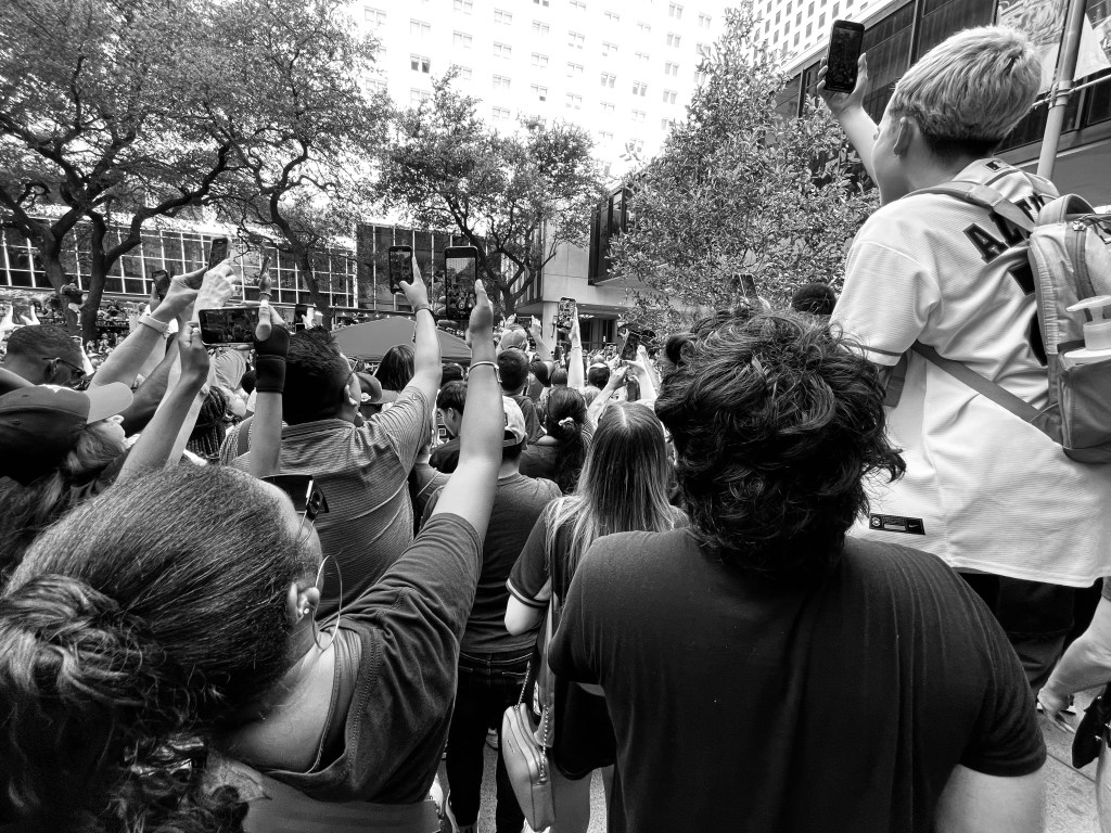 50 yards deep. The salty sea of bodies were packed malodorously tight as sardines over a mile-and-a-half all along the edge of Smith Street downtown. All were there waiting eagerly to catch a fleeting glimpse of their 2022 World Series Champion Houston Astros as they passed in the victory parade. Little space, let alone breathable air, remained between one attendee and the next inside the dense mass. Attempts to venture into and navigate the crowd for a better vantage point proved just as toilsome as a ship breaking ice through frozen arctic waters. The slow but steady effort yielded nothing but an ever more challenging escape and no closer to the perfect view. Fortune favored not the latecomers to the party.
